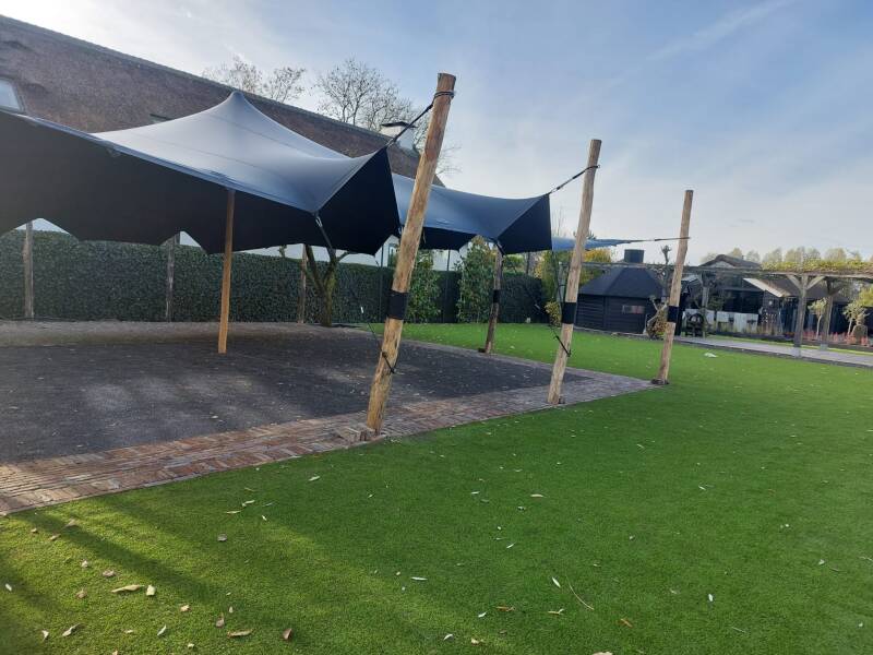 Maak uw stretchtent helemaal af met het toevoegen van Acacia boomstam palen. Met deze stoere boomstam palen in beton zijn er geen scheerlijnen nodig, zo creëert u een oersterke en robuuste vaste opstelling. De Stretchtenten zijn op vele creatieve manieren te bouwen , wij komen graag bij u langs om de mogelijkheden te bespreken en meten de tent voor u in.